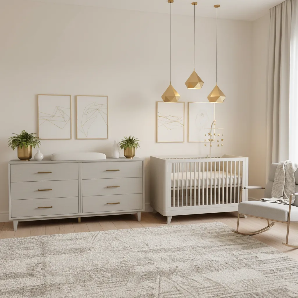 Brass or brushed gold hardware on dressers or lighting fixtures adds a touch of sophistication. It elevates the room from “cute” to “stylish,” ensuring the nursery flows well with your other home decor choices.
