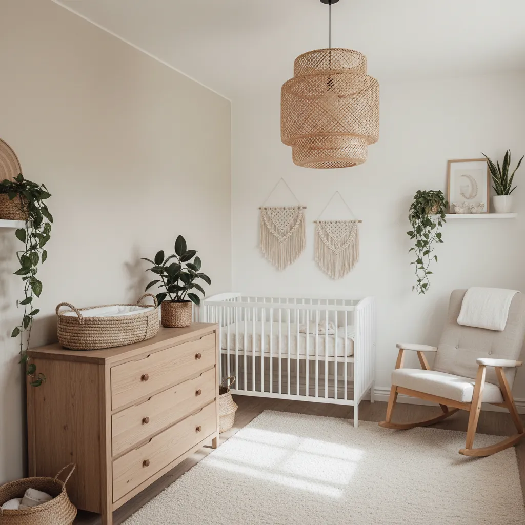 Rattan brings a vintage, bohemian charm that feels effortless. A wicker changing basket or a rattan pendant light adds intricate detail without overwhelming the visual senses. It’s light, airy, and fits perfectly with a neutral palette.