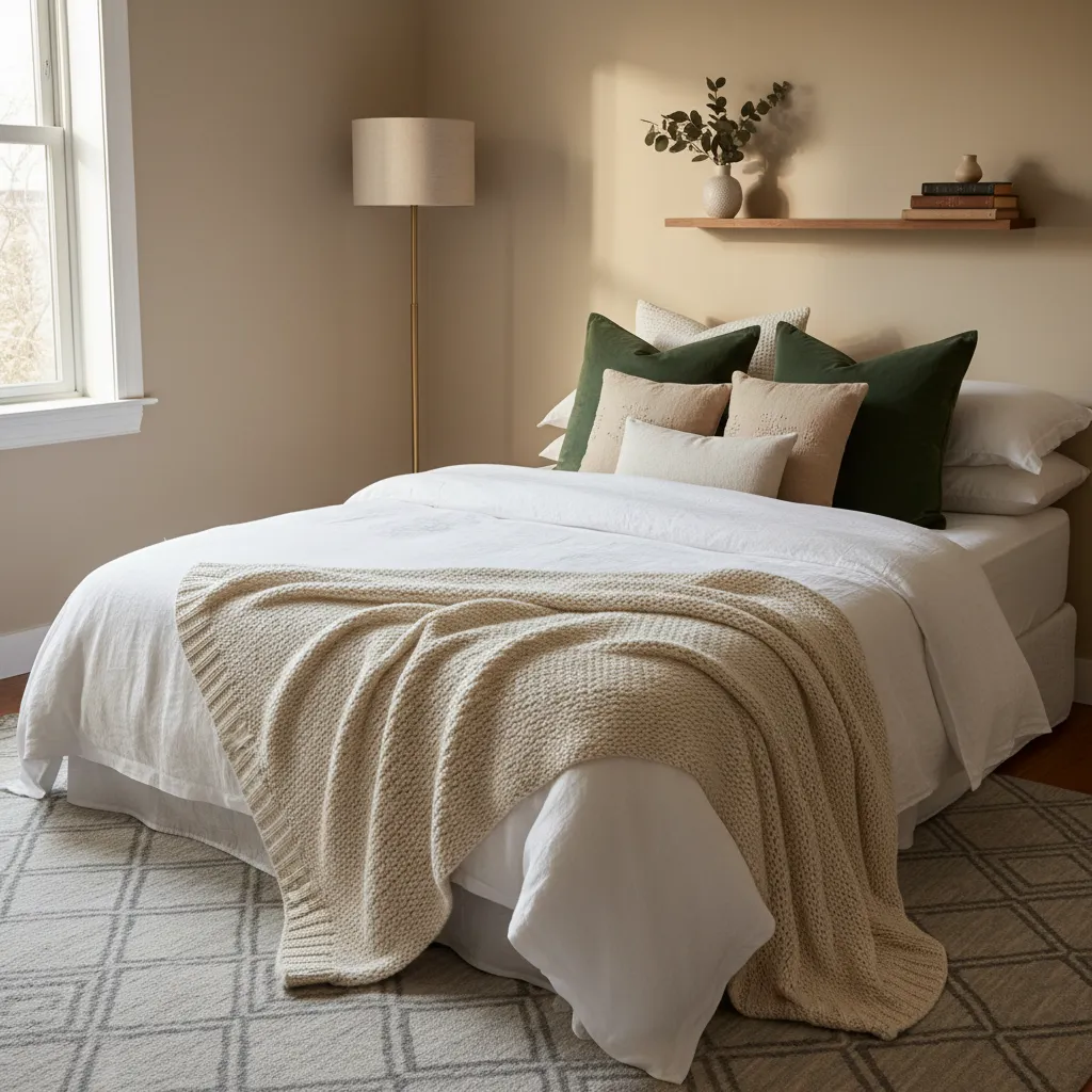 Your bed is likely the biggest item in the room, so make it the focal point. Layer a chunky knit throw over a linen duvet. Mix velvet pillows with cotton ones. This tactile variety makes the room feel rich and designed without adding physical clutter.