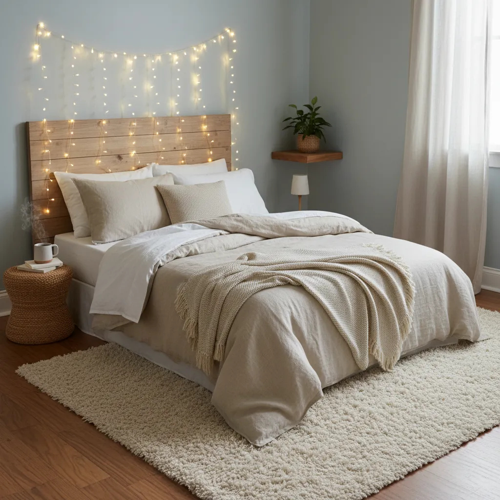 - Accent: Fairy lights draped over a headboard or LED strips behind a mirror.