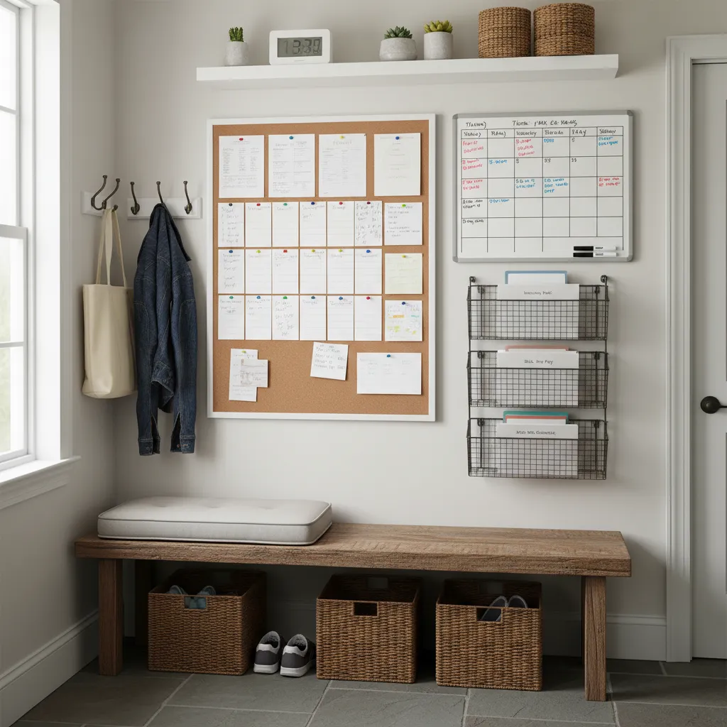 Designate a small spot for a “command center.” This could be a small corkboard, a magnetic whiteboard, or a wall-mounted file holder for important papers, reminders, and your family calendar.