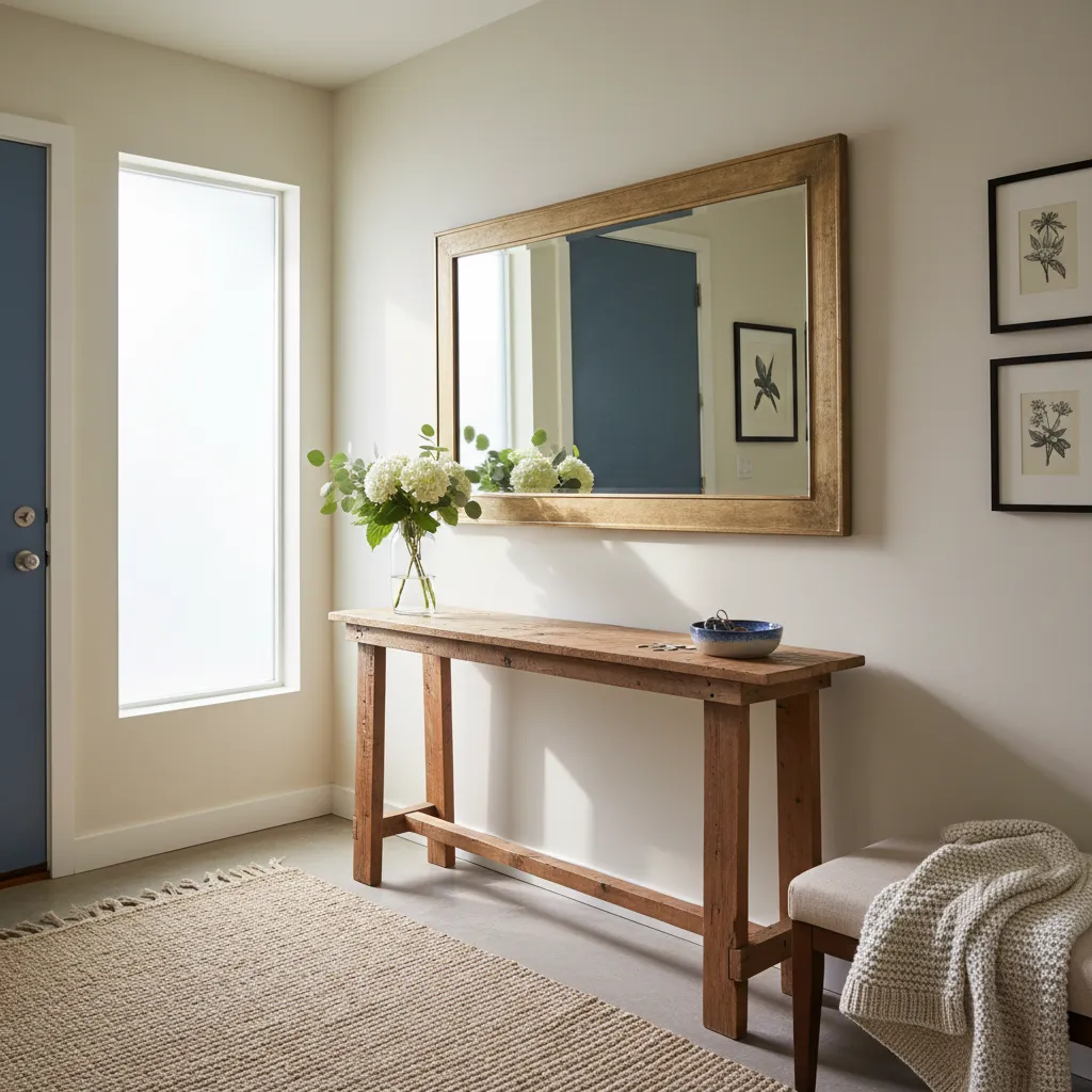 A mirror is a must-have for any small space. It reflects light, making the area feel larger and brighter. Plus, it’s perfect for a quick last look before you head out the door.