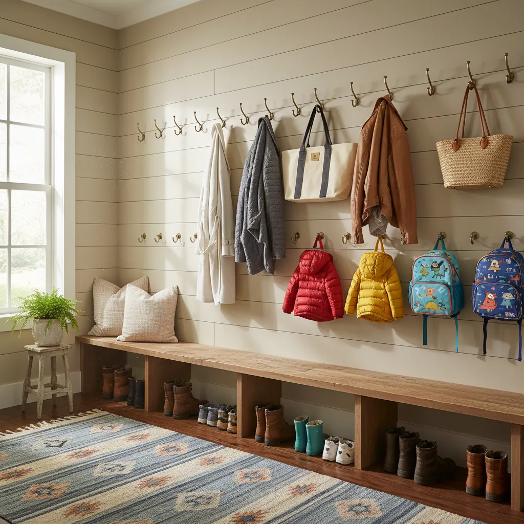 Don’t just install one row of hooks. Place a higher row for adult coats and bags and a lower row for kids’ jackets and backpacks. This simple trick doubles your hanging space and empowers little ones to manage their own belongings.