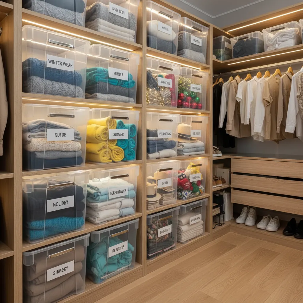 9. Opt for Clear Bins in Closets