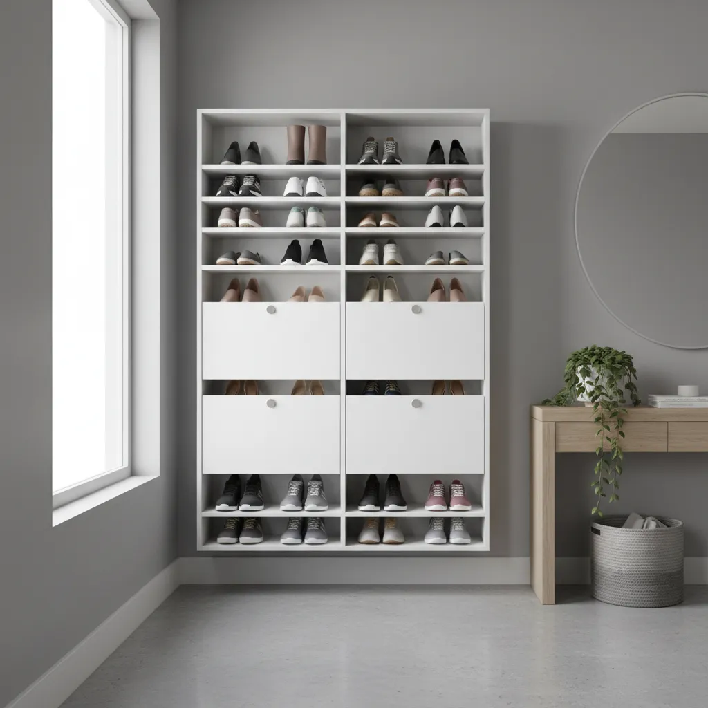Tired of tripping over a pile of shoes? A slim, wall-mounted shoe cabinet is a fantastic solution. These clever cabinets tilt open to store several pairs of shoes vertically, taking up minimal depth while keeping your footwear organized and out of sight.