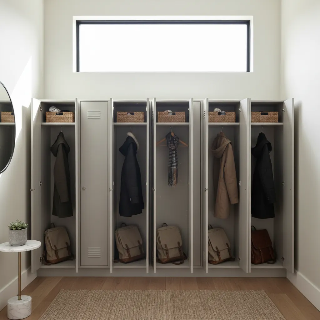 Think beyond traditional, bulky furniture. Tall, narrow lockers or cubbies give each family member a designated spot to hang their coat, store a backpack, and tuck away their shoes. This keeps clutter off the floor and contained.