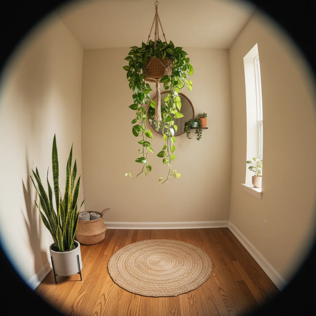 A touch of nature makes any space feel more alive. If floor space is tight, consider a small potted plant on a shelf, a hanging planter, or a slender snake plant in a corner. Even a simple vase of fresh flowers can brighten up the area.