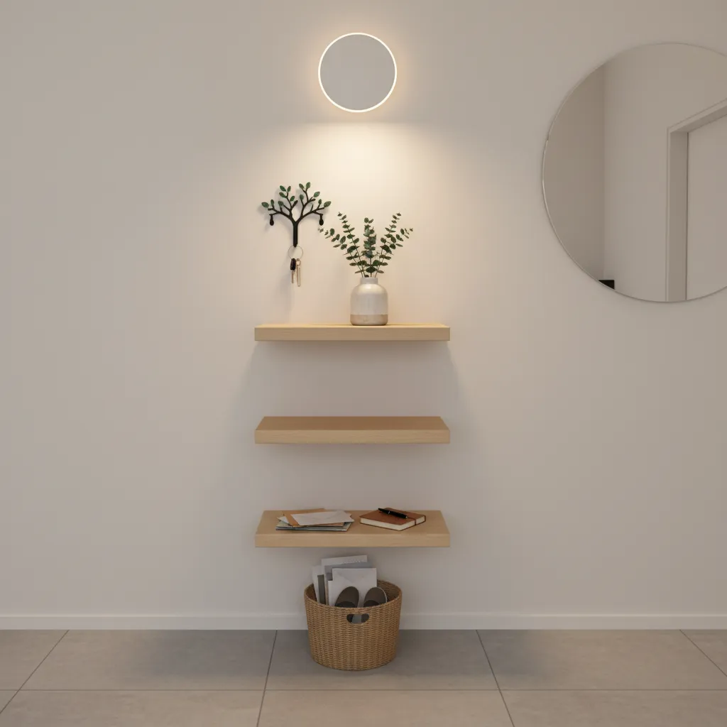 Floating shelves are a small entryway’s best friend. They provide storage and display space without the bulk of a traditional console table. Use them to hold keys, mail, or a small decorative vase. For a cohesive look, arrange a few shelves vertically to draw the eye upward and create a sense of height.