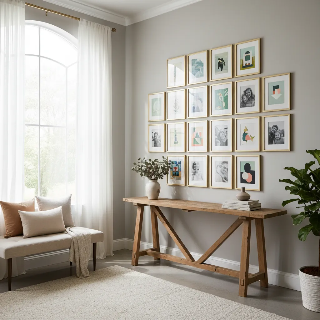 A gallery wall is a fantastic way to inject personality. Curate a collection of small-scale art, family photos, and prints. Use frames of similar colors or materials to create a unified look, and arrange them thoughtfully to fill a blank wall without overwhelming it.