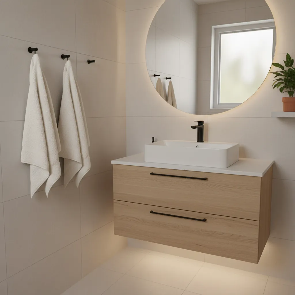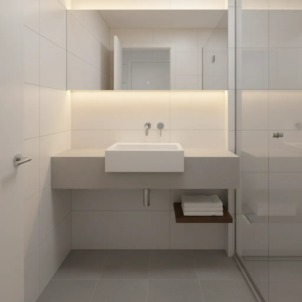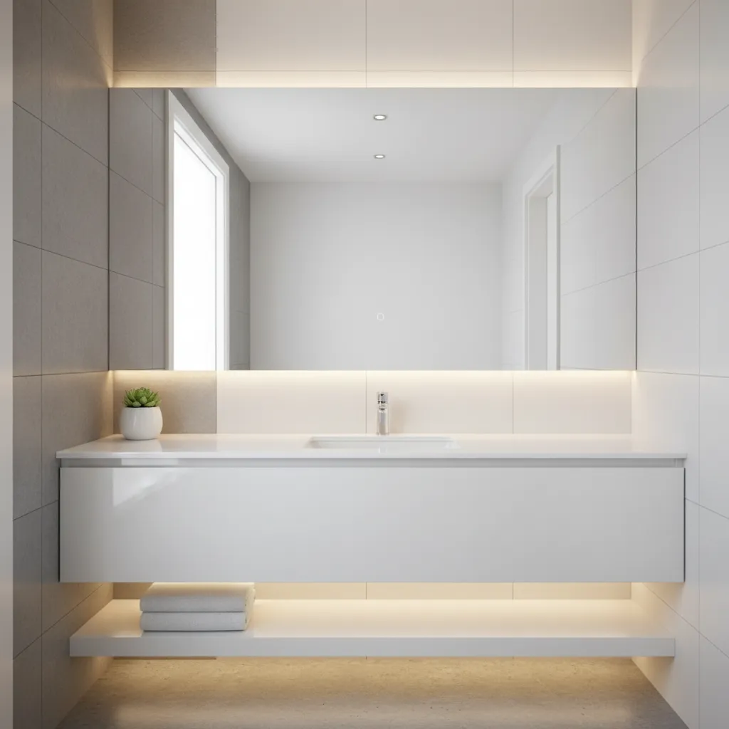 A large mirror is a classic trick for making any small room feel bigger. It reflects light and the room itself, creating a sense of depth. Consider a frameless mirror that covers a large portion of the wall above your vanity for a modern, seamless look.