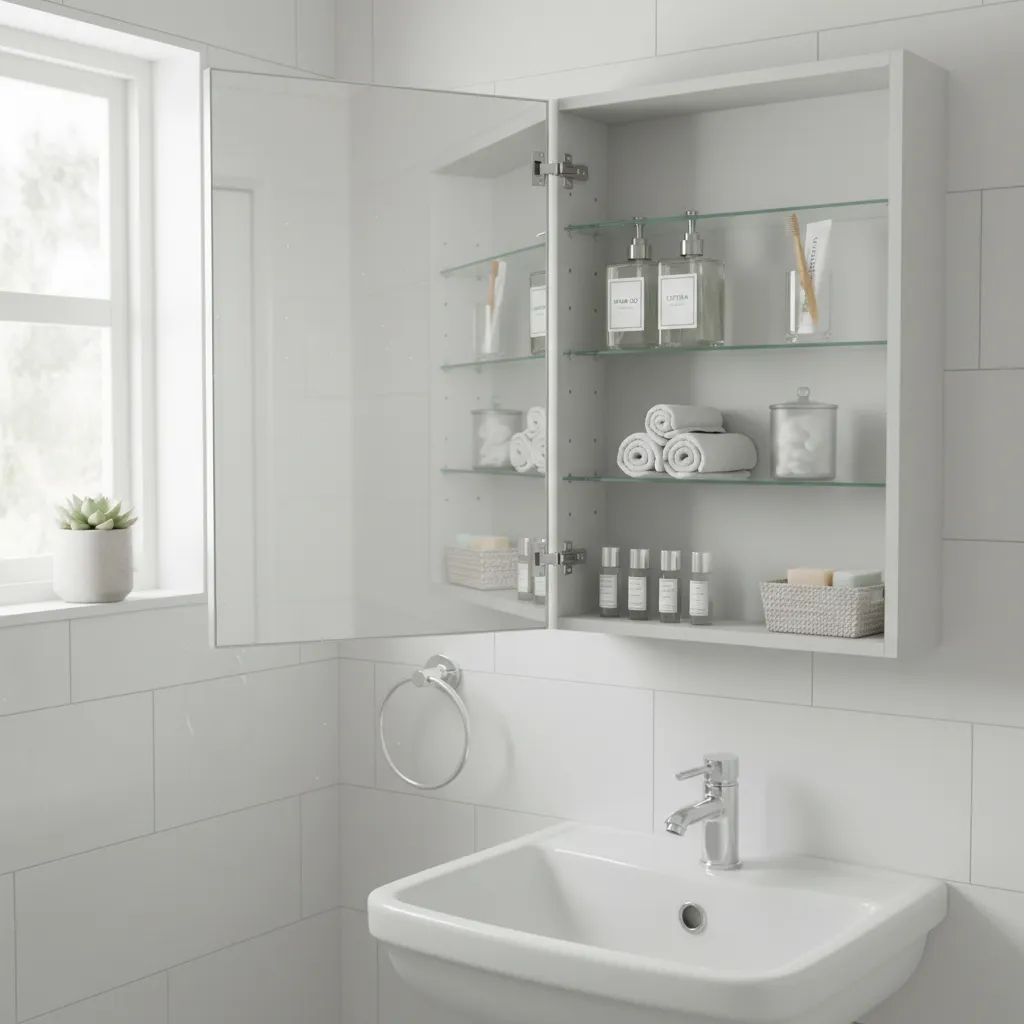 Swap a bulky, wall-mounted medicine cabinet for a recessed one. This simple change can make the entire room feel more open. A mirrored front will also help reflect light, making the space feel brighter and larger.