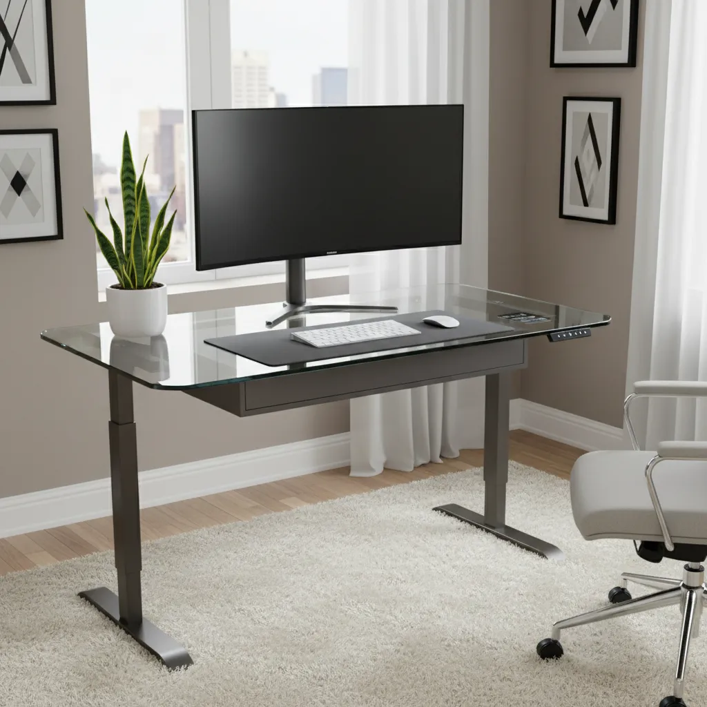 A tempered glass top combined with a metal frame offers a sleek, modern aesthetic. Many glass standing desks come with built-in touch controls and even hidden drawers. They reflect light beautifully, making small rooms feel larger.