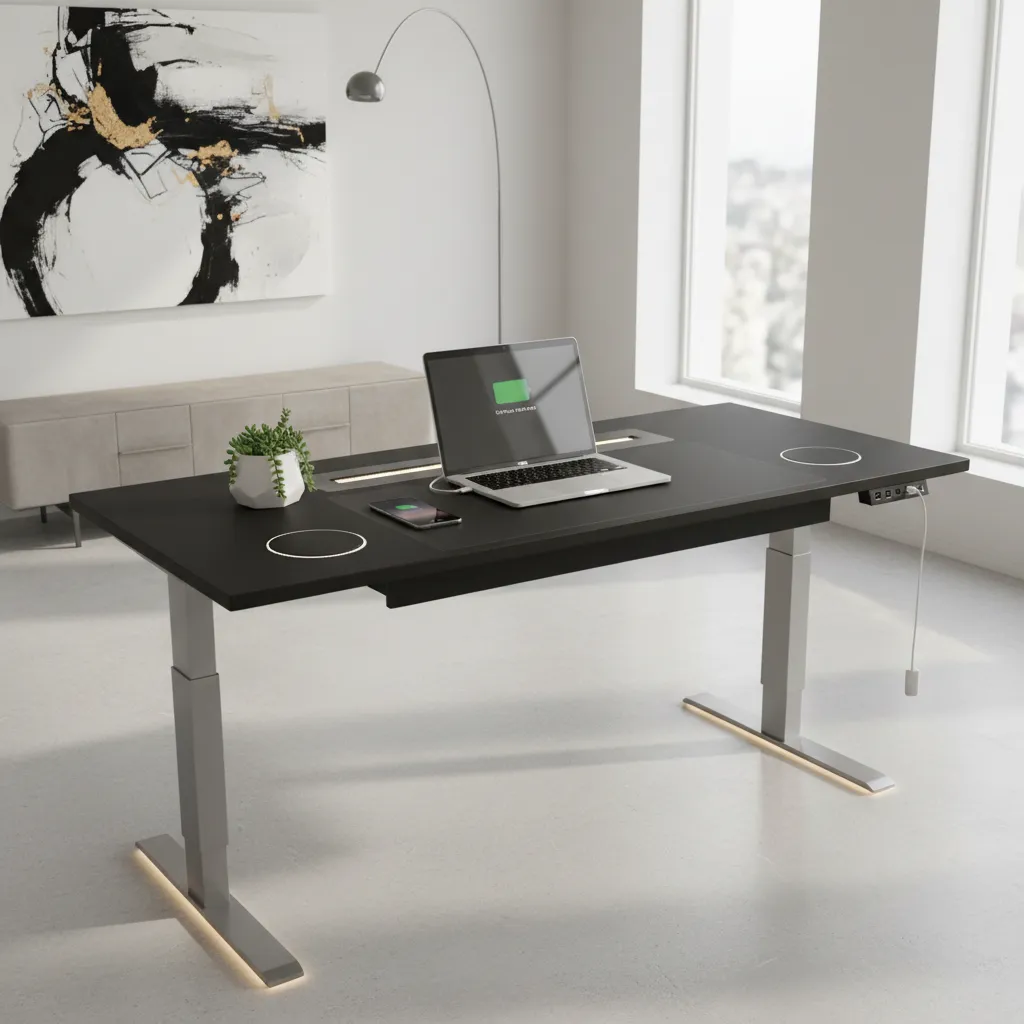 These desks feature built-in wireless charging pads, flush-mounted USB ports, and integrated power strips. You will never have to crawl under your desk to plug in a laptop again.