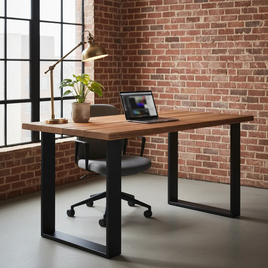 Using reclaimed wood gives your desk character and history. The weathered look contrasts beautifully with heavy black steel legs, creating a perfect industrial-rustic vibe.