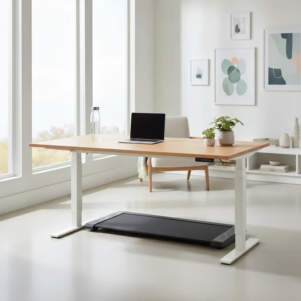 If standing is not enough movement for you, pair a tall, wide desk with an under-desk walking pad. Getting your steps in while answering emails is a fantastic way to boost your cardiovascular health during the workday.