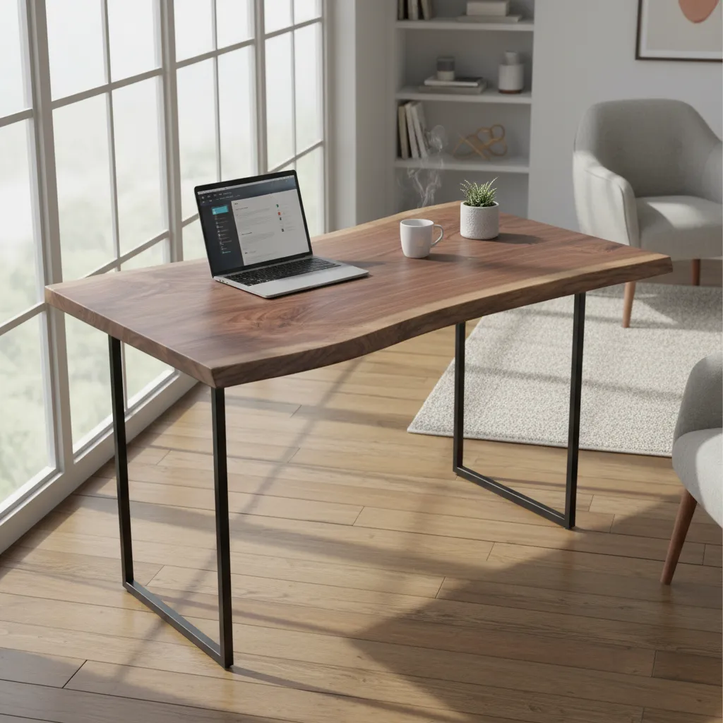 Mix up your styling by painting your desk frame an accent color while leaving the top natural wood. Exploring the Best Office Paint Shades can help you choose a color that boosts your mood and productivity.