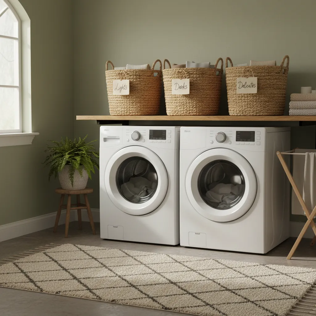 Sorting is often the bottleneck of the laundry process. Make it effortless by using a designated basket system.