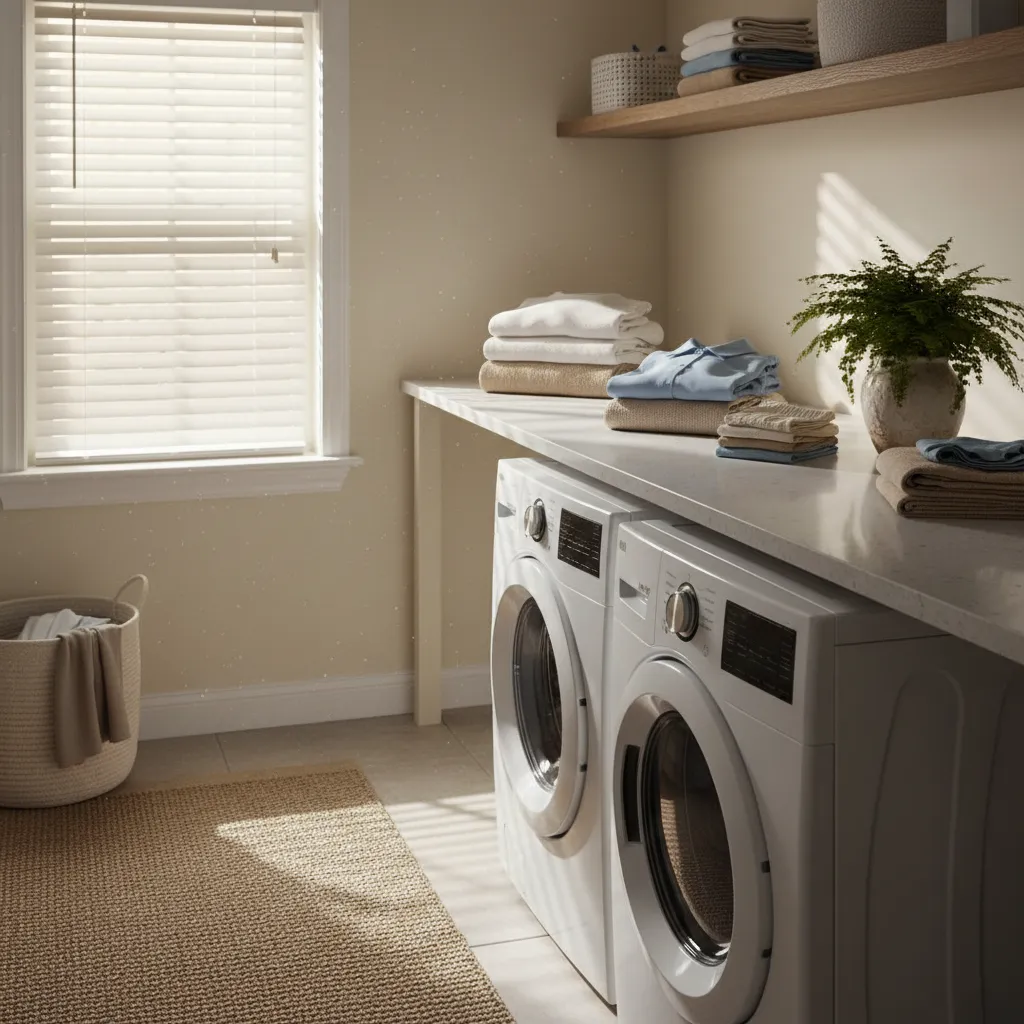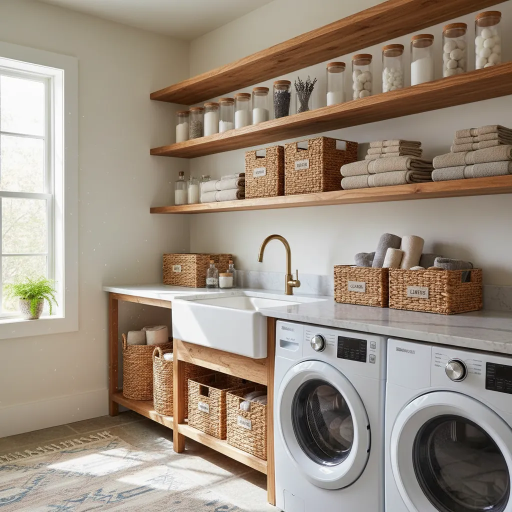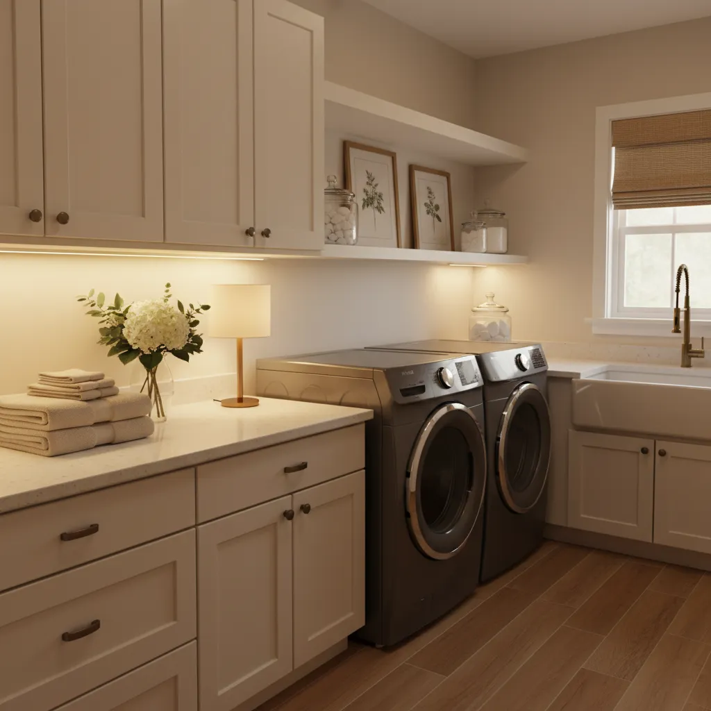 If you have shelves, consider adding under-cabinet lighting or a small, charming table lamp if you have counter space. Soft lighting changes the ambiance completely, making the room feel inviting rather than sterile. It makes late-night laundry sessions much more pleasant.