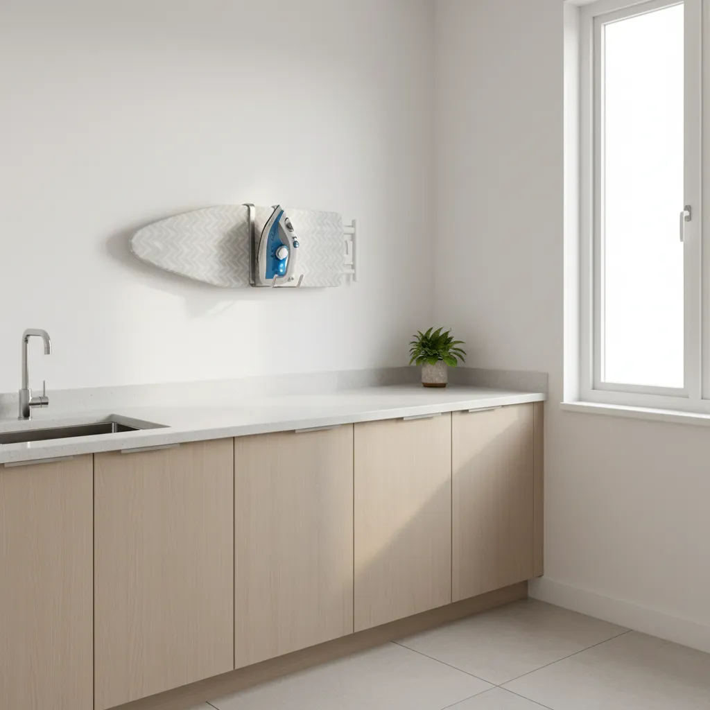 - Ironing Boards: Mount a holder on the wall or the back of the door to hang the board and iron together. Alternatively, install a stow-away ironing board drawer.