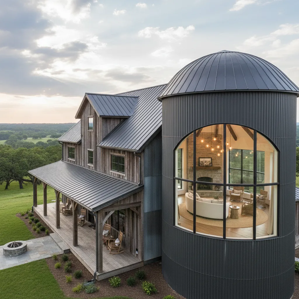 Incorporating a silo into the design is the ultimate nod to agricultural history. Whether it’s functional storage or converted into a unique circular room (like a breakfast nook or office), a silo adds an iconic focal point that distinguishes your home from neighbors.