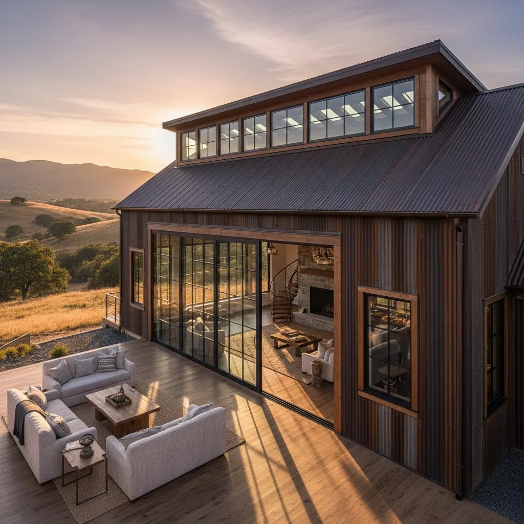 You don’t have to use metal siding everywhere. Using fiber cement board and batten siding gives the barndo a more residential, softer texture. It feels less like a warehouse and more like a countryside estate.