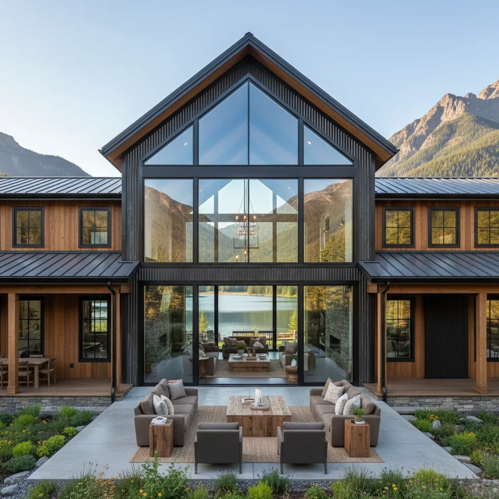Imagine the entire end wall of your home being glass. This “glass gable” design is breathtaking, especially if your property overlooks a lake or mountains. It turns the view into a living mural. If you love large-scale art, you might also appreciate Vibrant DIY Wall Murals for your interior accent walls.