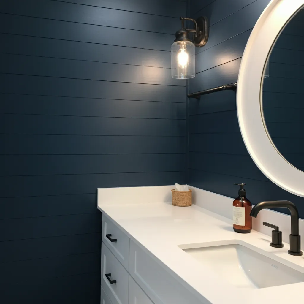 Create a focal point with an accent wall. Use materials like shiplap, stone, or bold paint colors to draw attention. This works especially well behind the vanity or bathtub.