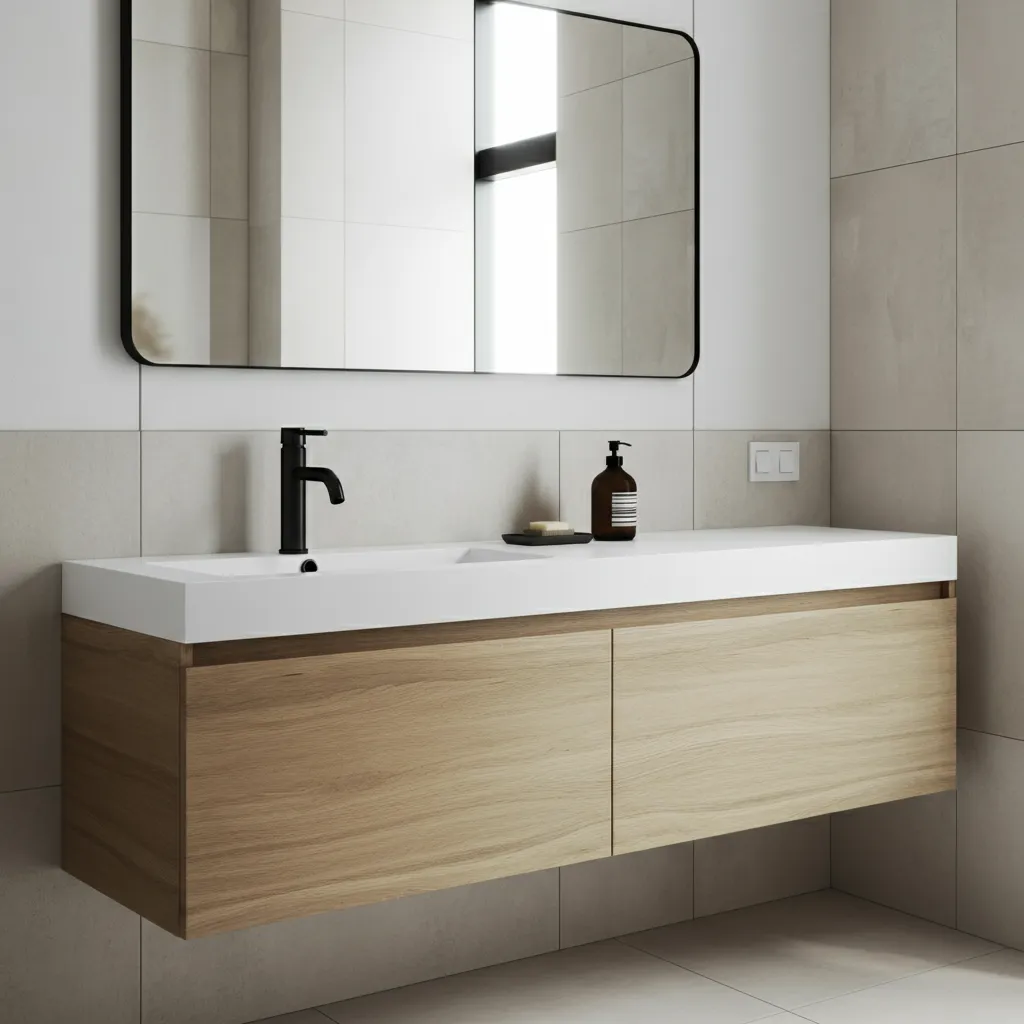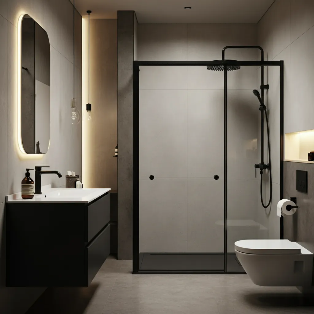 Floating vanities, compact cabinets, shelves, and multifunctional storage solutions help keep the space organized while maintaining a clean, stylish look. Choose furniture with materials resistant to moisture and humidity.