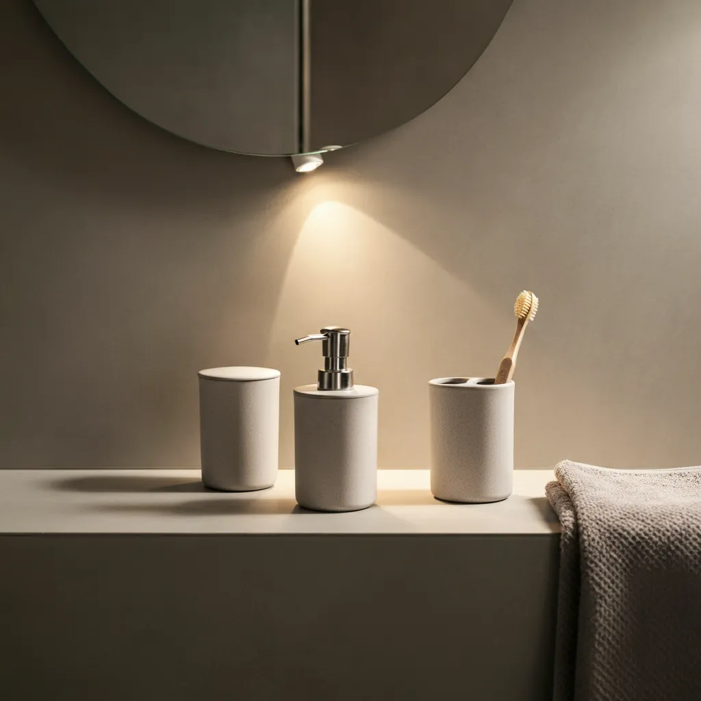 Keep your bathroom clutter-free with minimalist accessories. Opt for sleek soap dispensers, toothbrush holders, and towel racks in neutral tones or metallic finishes.