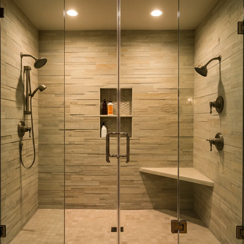 Transform your shower into a spa-like retreat with frameless glass enclosures. Add a rainfall showerhead and natural stone tiles for a luxurious touch. Don’t forget to include a built-in bench or niche for added functionality.