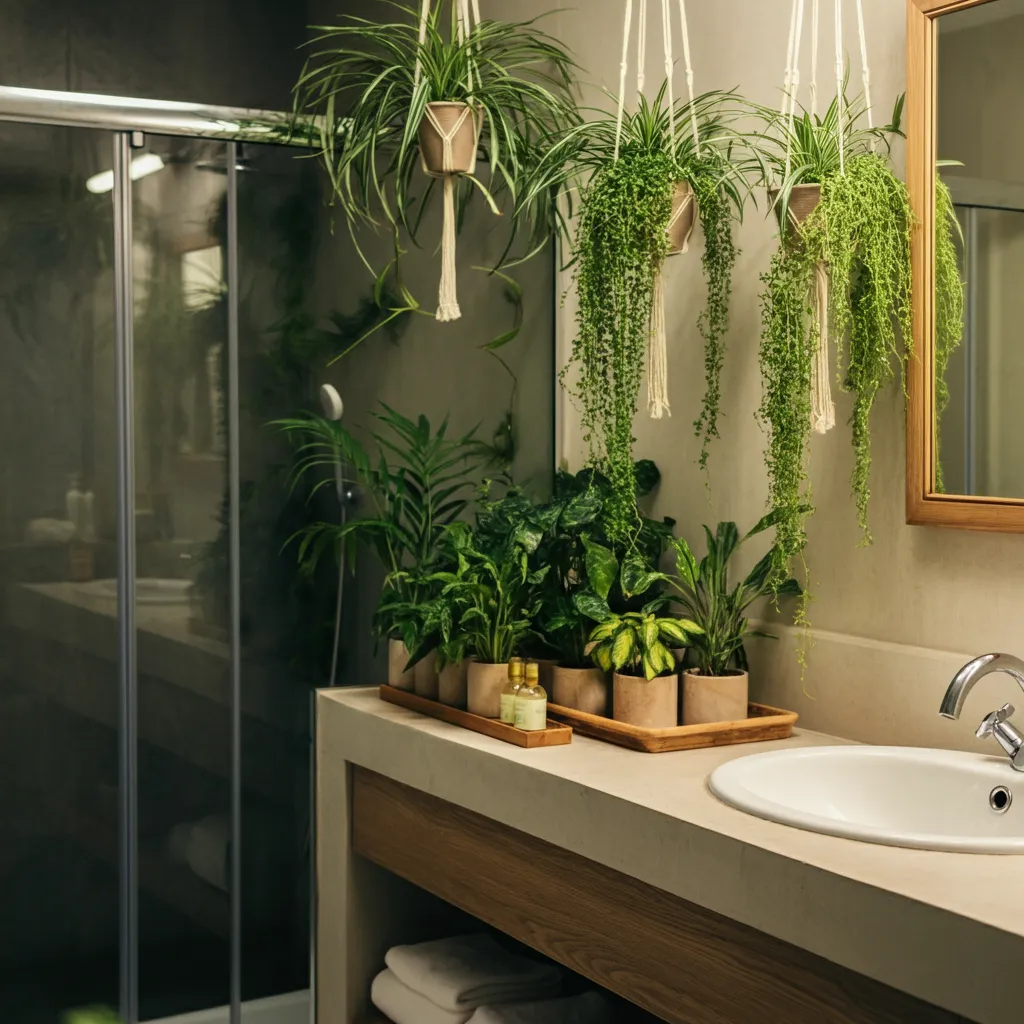 Plants thrive in the humid environment of a bathroom. Add a touch of greenery with low-maintenance options like ferns, pothos, or snake plants. Hanging planters or small pots on shelves work beautifully.