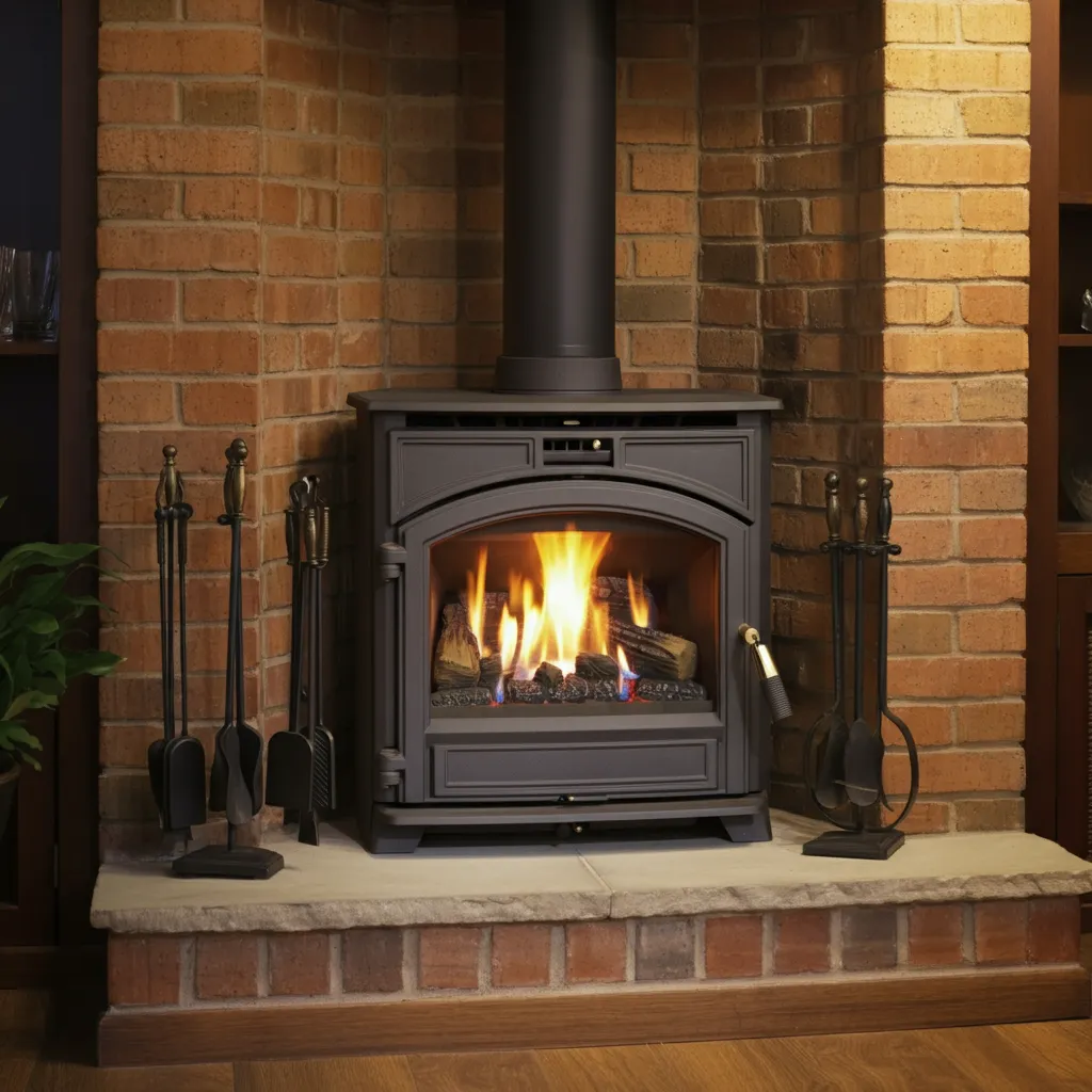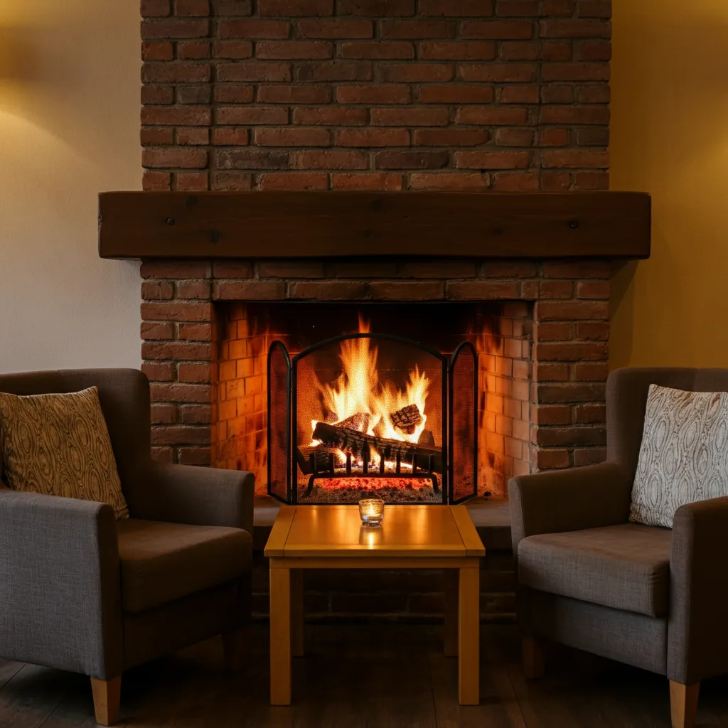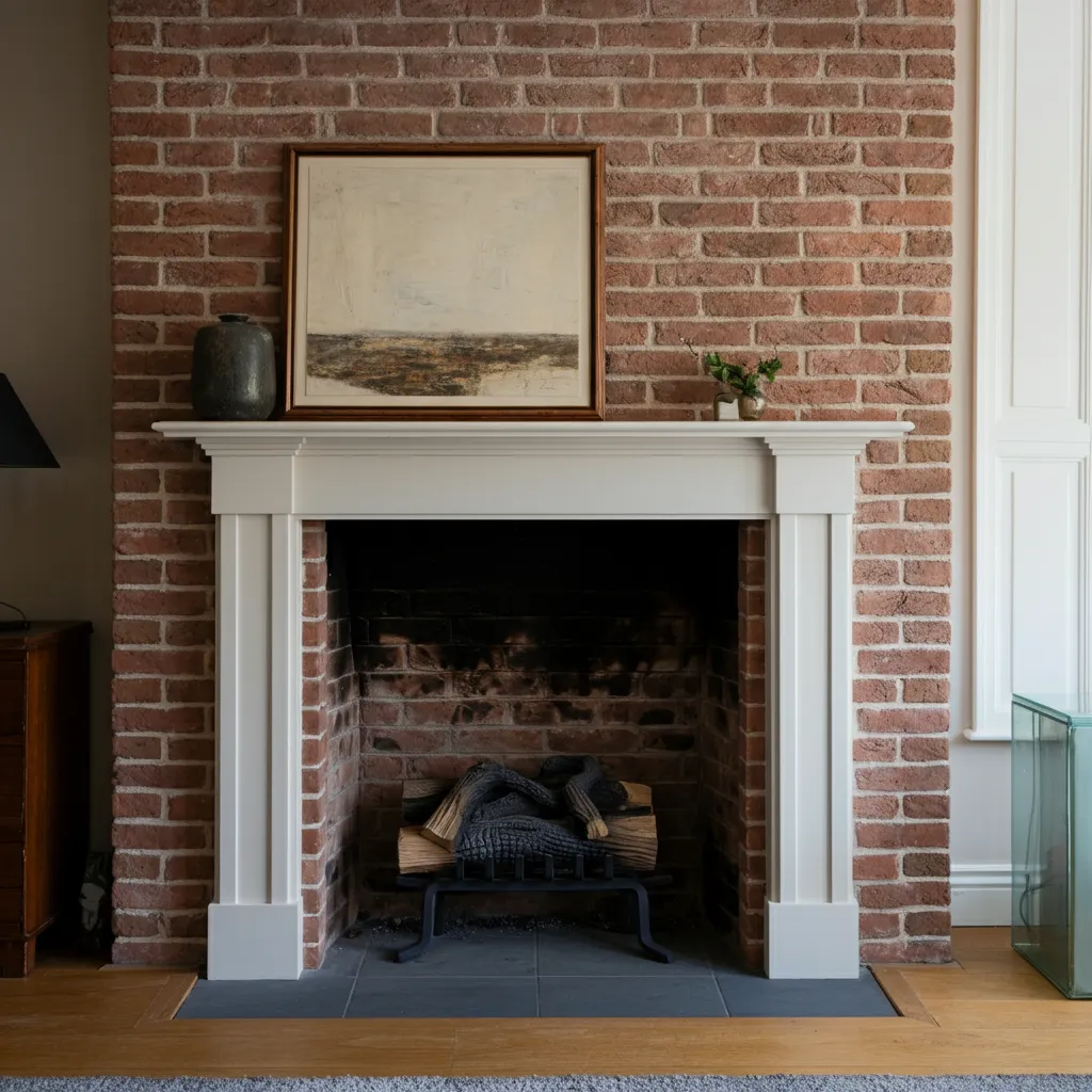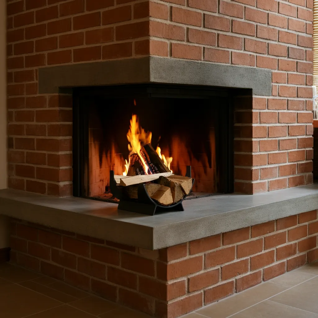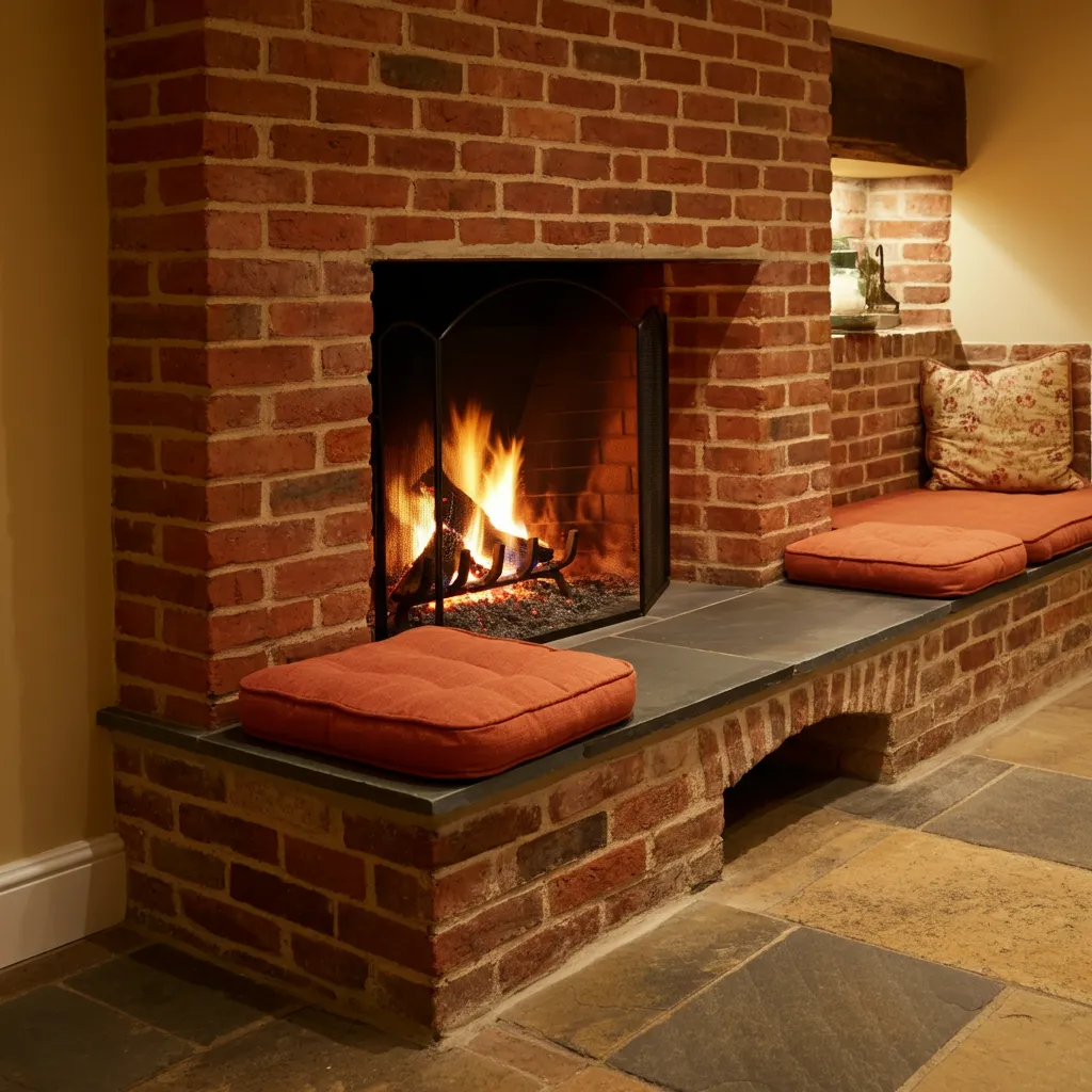 A brick fireplace adds warmth, texture, and character to any room. Its timeless appeal works well with modern, rustic, and traditional interiors, serving as a cozy focal point for living spaces.