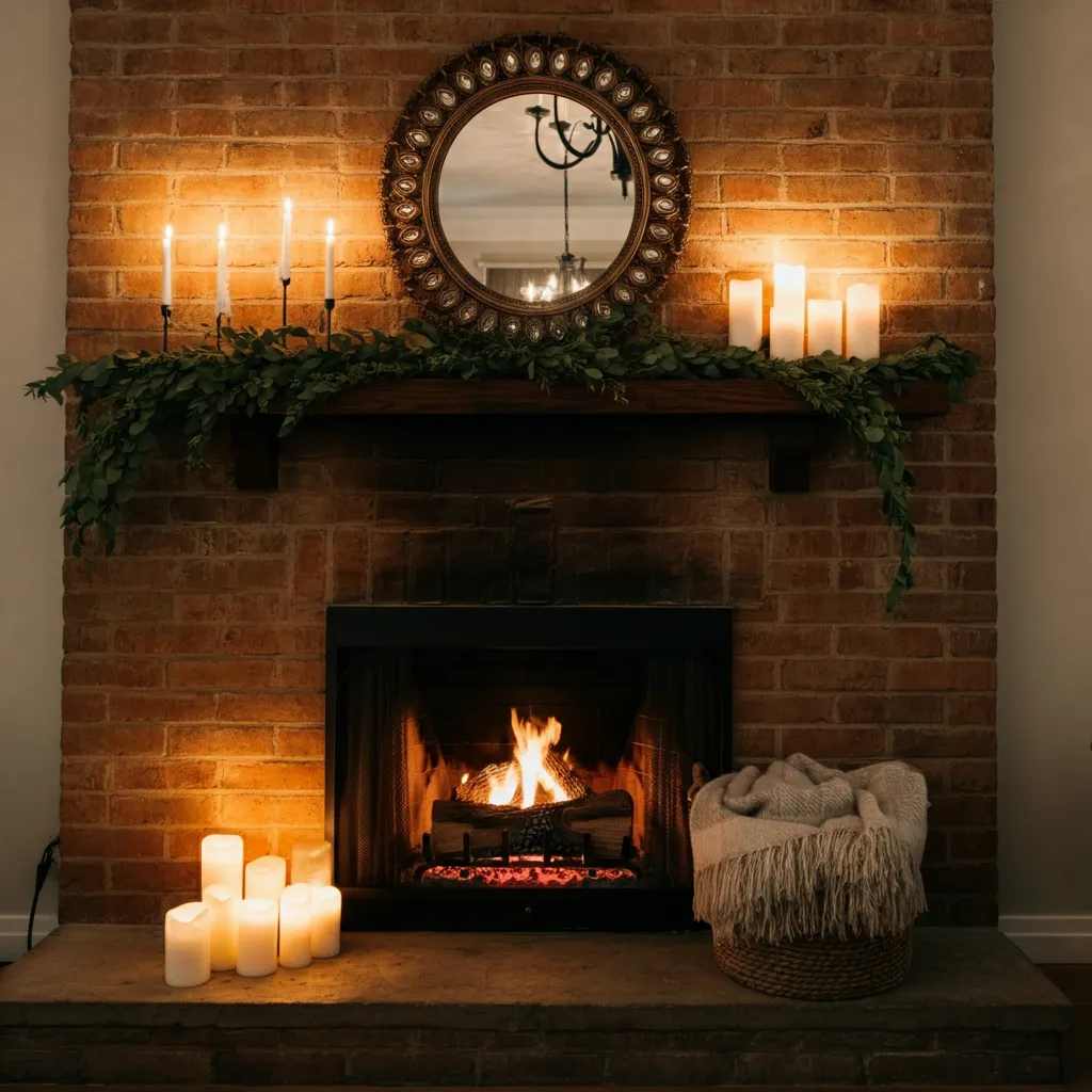 Add seating nearby, layer rugs and throw blankets, and place decorative accessories like candles, vases, or framed photos on the mantel. Warm lighting enhances the inviting ambiance.