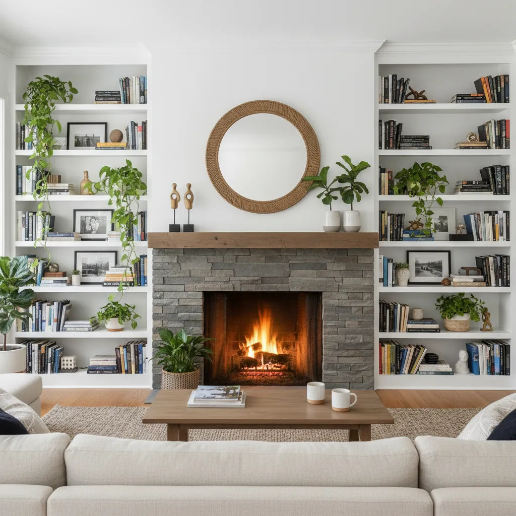 Flank your fireplace with built-in shelves to create a functional and stylish feature wall. Use the shelves to display books, plants, and decor items that reflect your personal style.