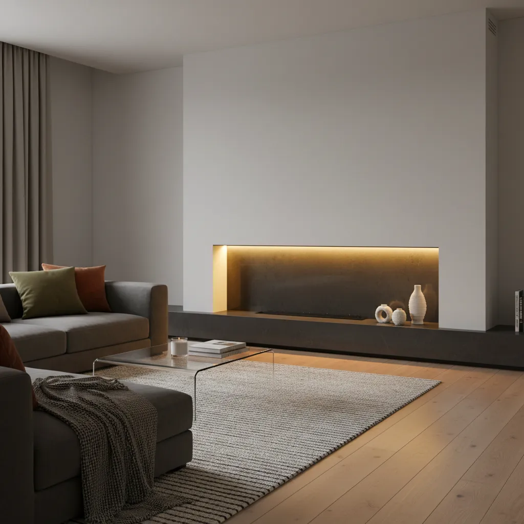 Highlight your fireplace with LED strip lighting. Place it under the mantel or around the surround to create a warm, inviting glow.