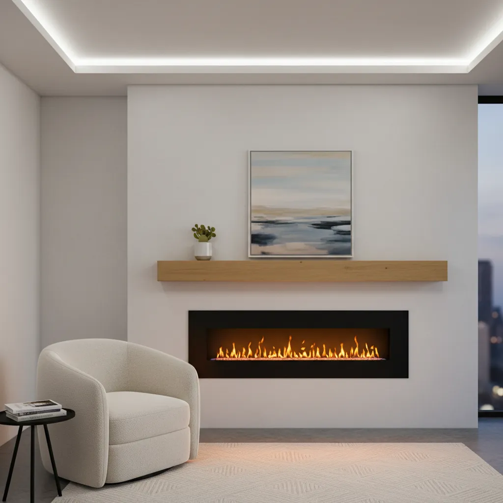 A floating mantel offers a sleek, modern look. Pair it with minimal decor for a clean, uncluttered aesthetic.