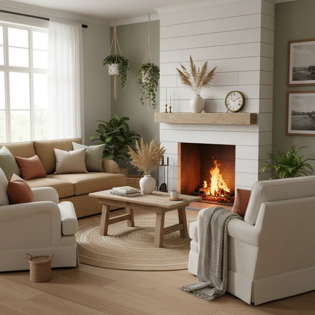 Shiplap is a popular choice for creating a cozy, cottage-style aesthetic. Use it to frame your fireplace and complement it with soft, neutral decor.