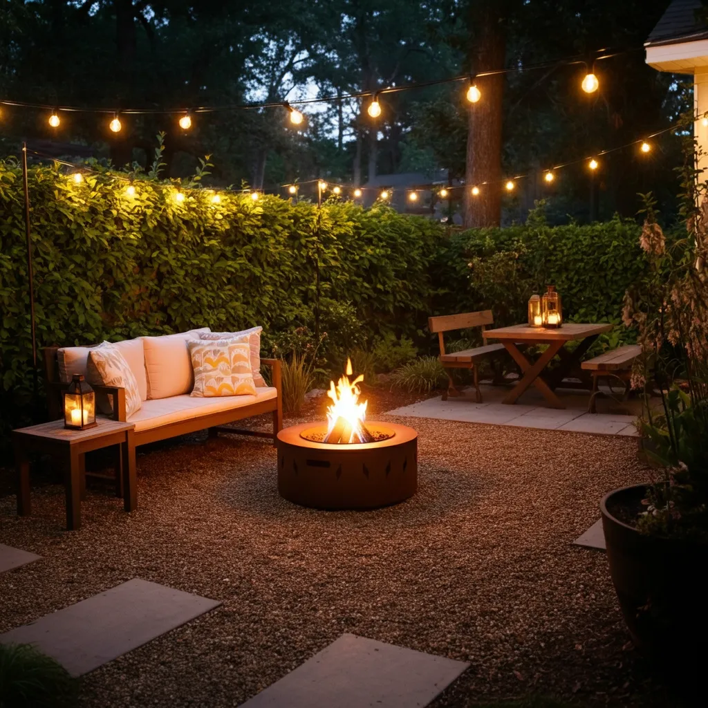 Strategic lighting extends the use of your patio into the evening. Use a combination of string lights for ambiance, solar-powered path lights along the edges, and spotlights to highlight trees or other features.