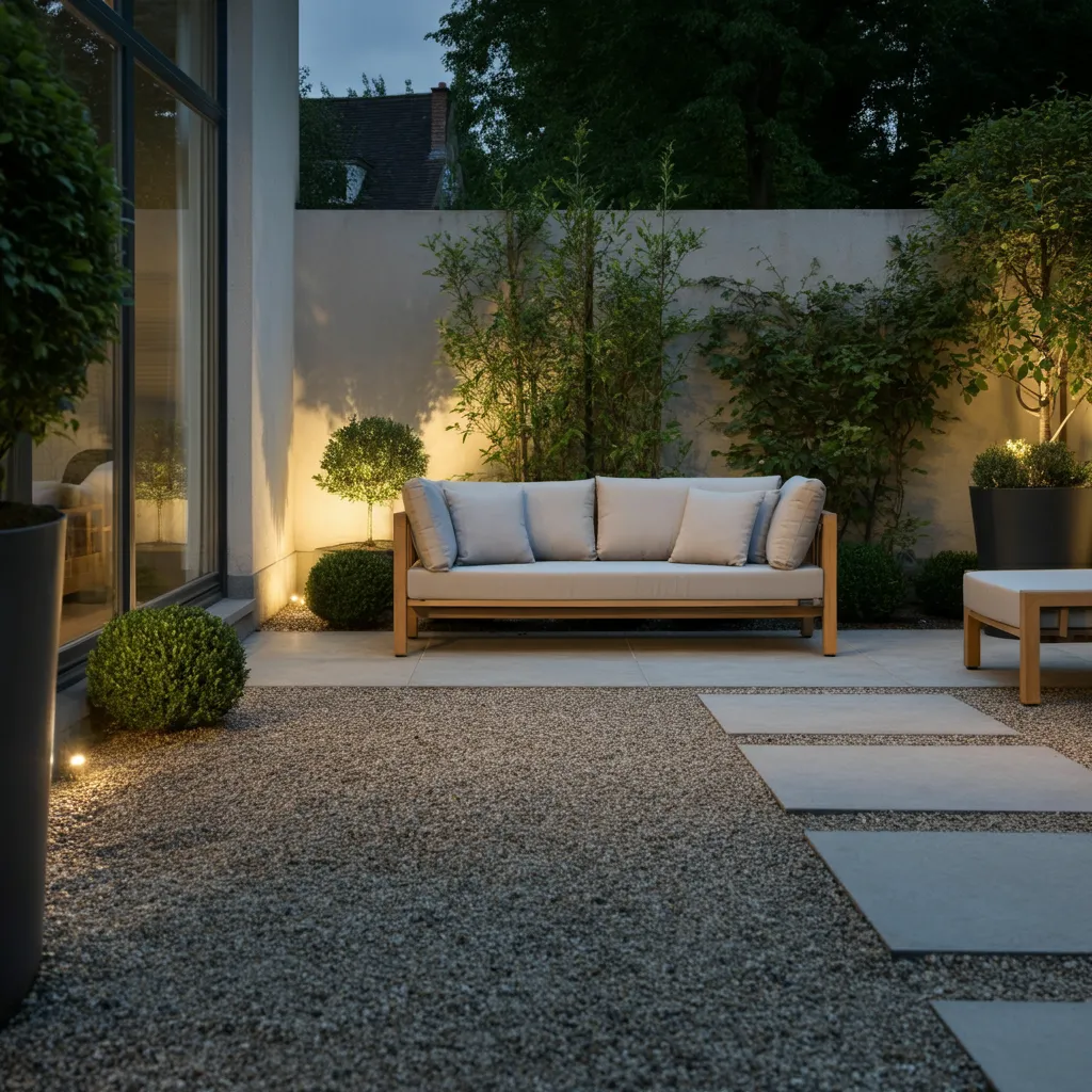 For a contemporary look, pair light-colored gravel with sleek, modern furniture. Think clean lines, neutral cushions, and simple forms. This approach to home decor emphasizes simplicity and creates a serene, uncluttered retreat.