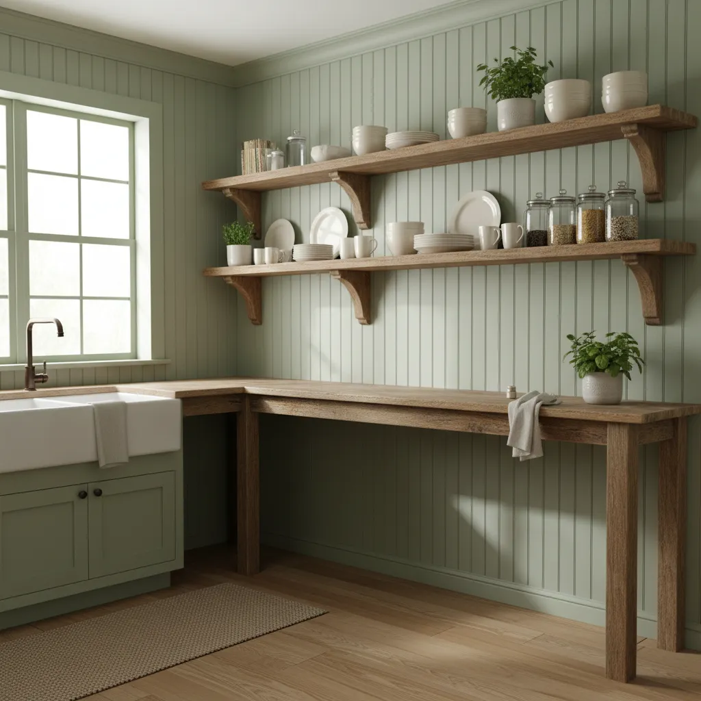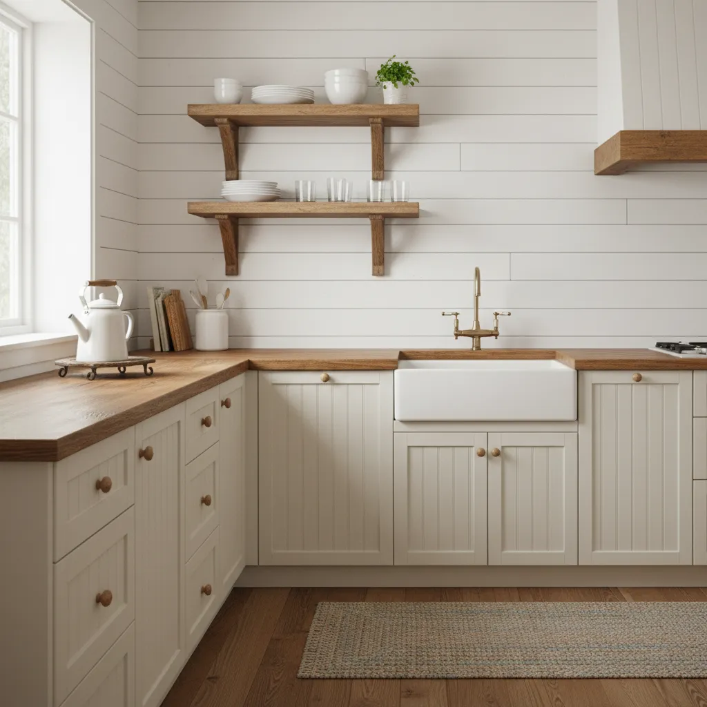 For a true farmhouse or coastal cottage aesthetic, beadboard is a charming and budget-friendly option. Painted in a creamy white or a soft sage green, it adds instant texture and architectural interest. It’s a simple way to make a large kitchen feel more intimate and grounded.