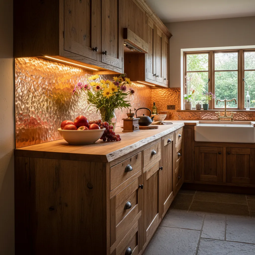 Copper, brass, or stainless steel tiles can add a surprising warmth. A hammered copper backsplash, in particular, glows beautifully under under-cabinet lighting, radiating a literal warmth throughout the room.