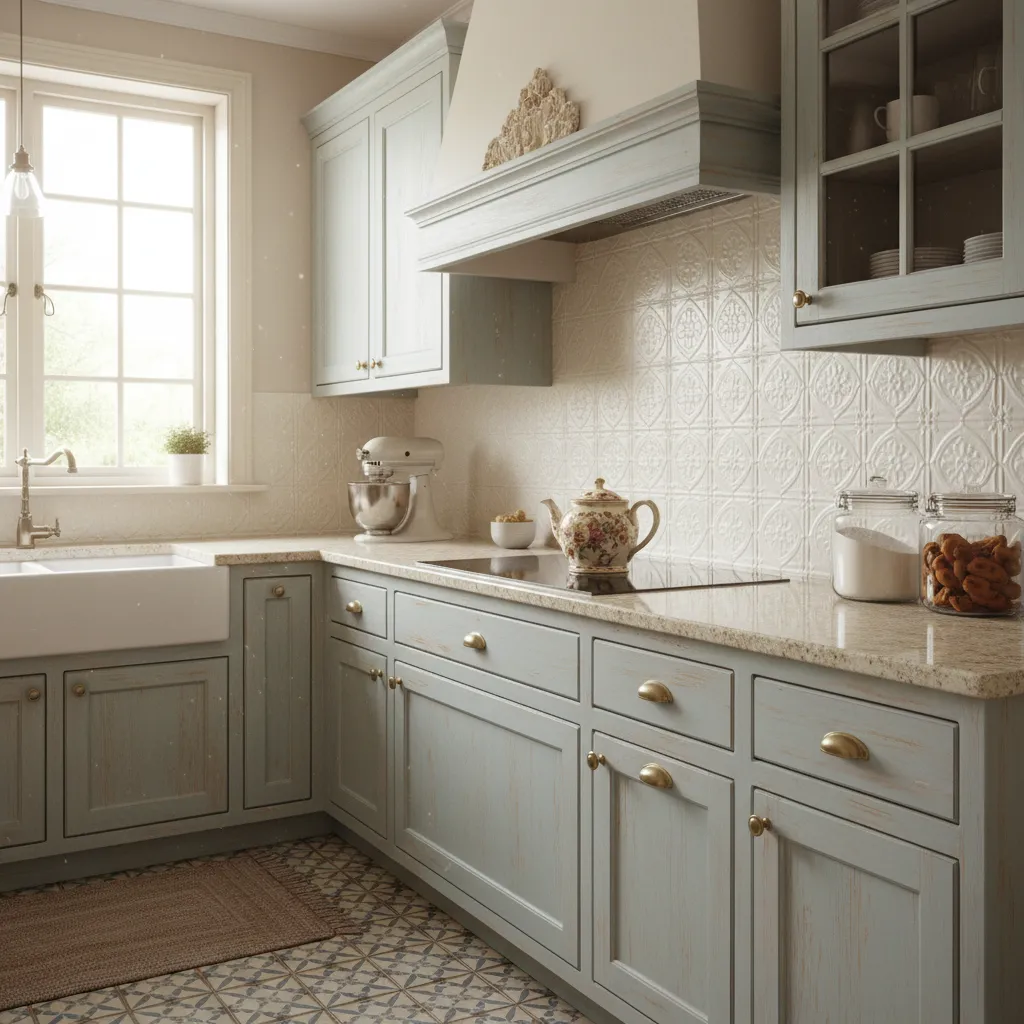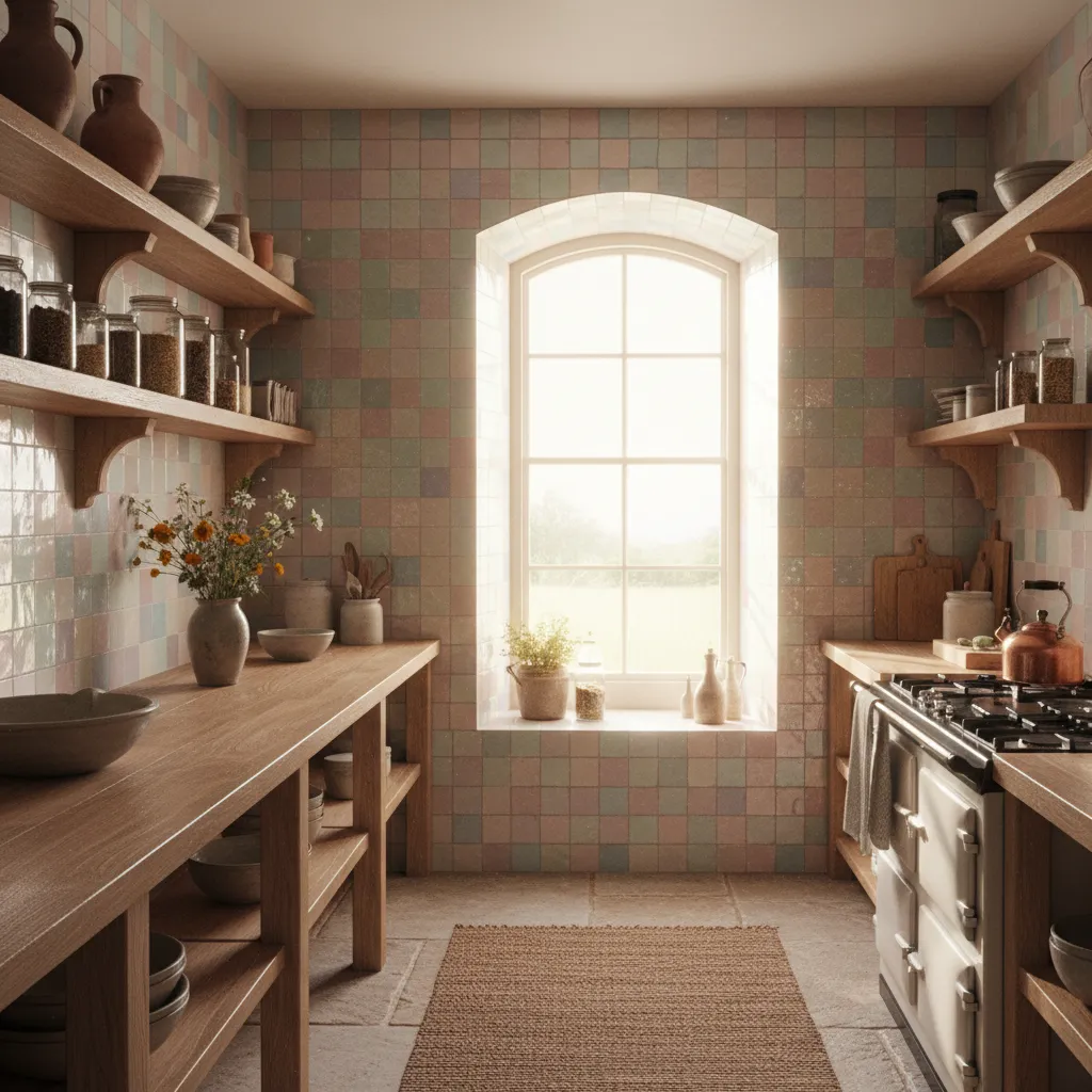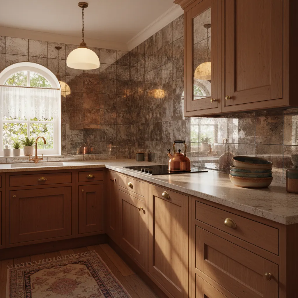 Want to make a small kitchen feel bigger and brighter? Antique mirror tiles reflect light and add a touch of vintage glamour. The “foxed” or distressed finish keeps it from looking like a disco ball, ensuring the vibe remains warm and lived-in.
