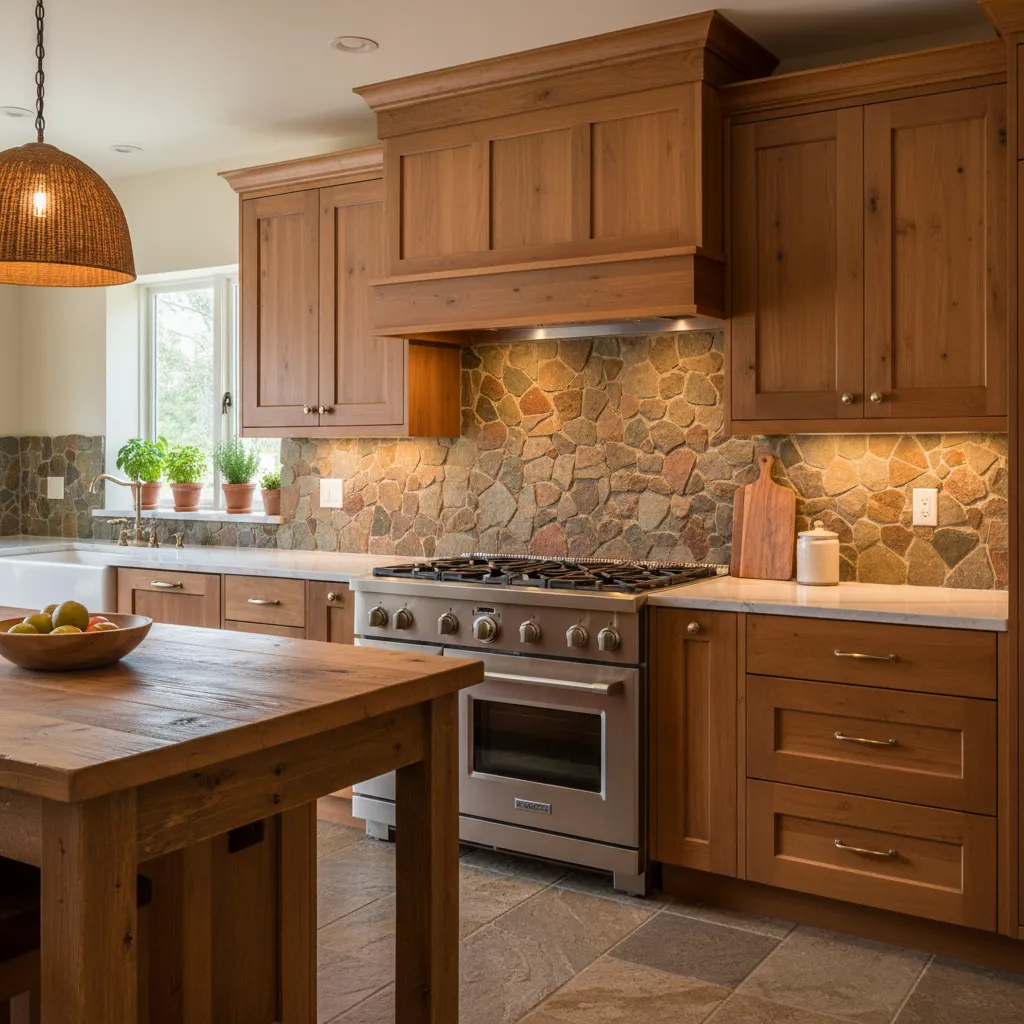 While wood requires sealing to be water-resistant, it adds unparalleled warmth. Reclaimed wood planks or marine-grade plywood can bring a rustic cabin feel right into your suburban kitchen. It softens the hard surfaces of appliances and stone counters.
