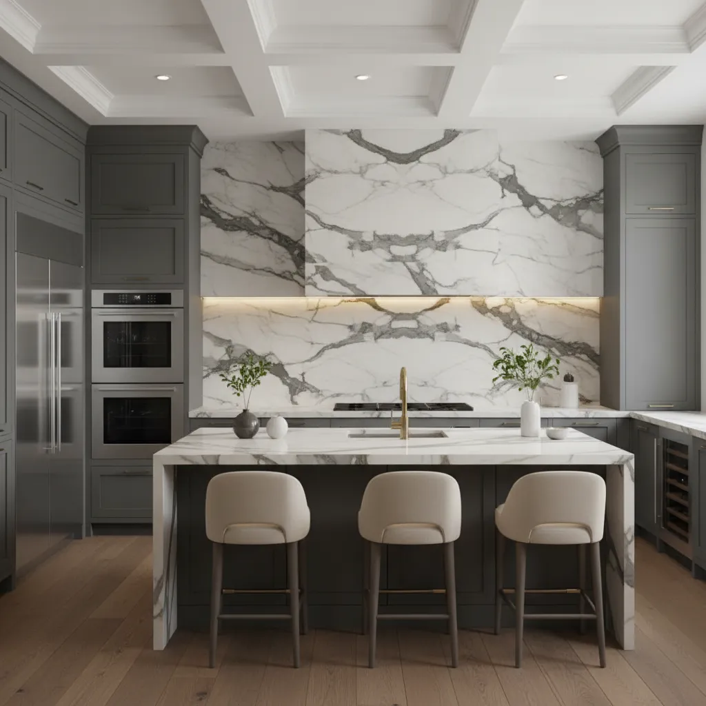 Seamless and stunning, a solid slab of stone (matching your countertops) creates a luxurious, uninterrupted flow. Marble or quartz slabs with dramatic veining act as natural art. Without grout lines to clean, it’s as practical as it is beautiful.