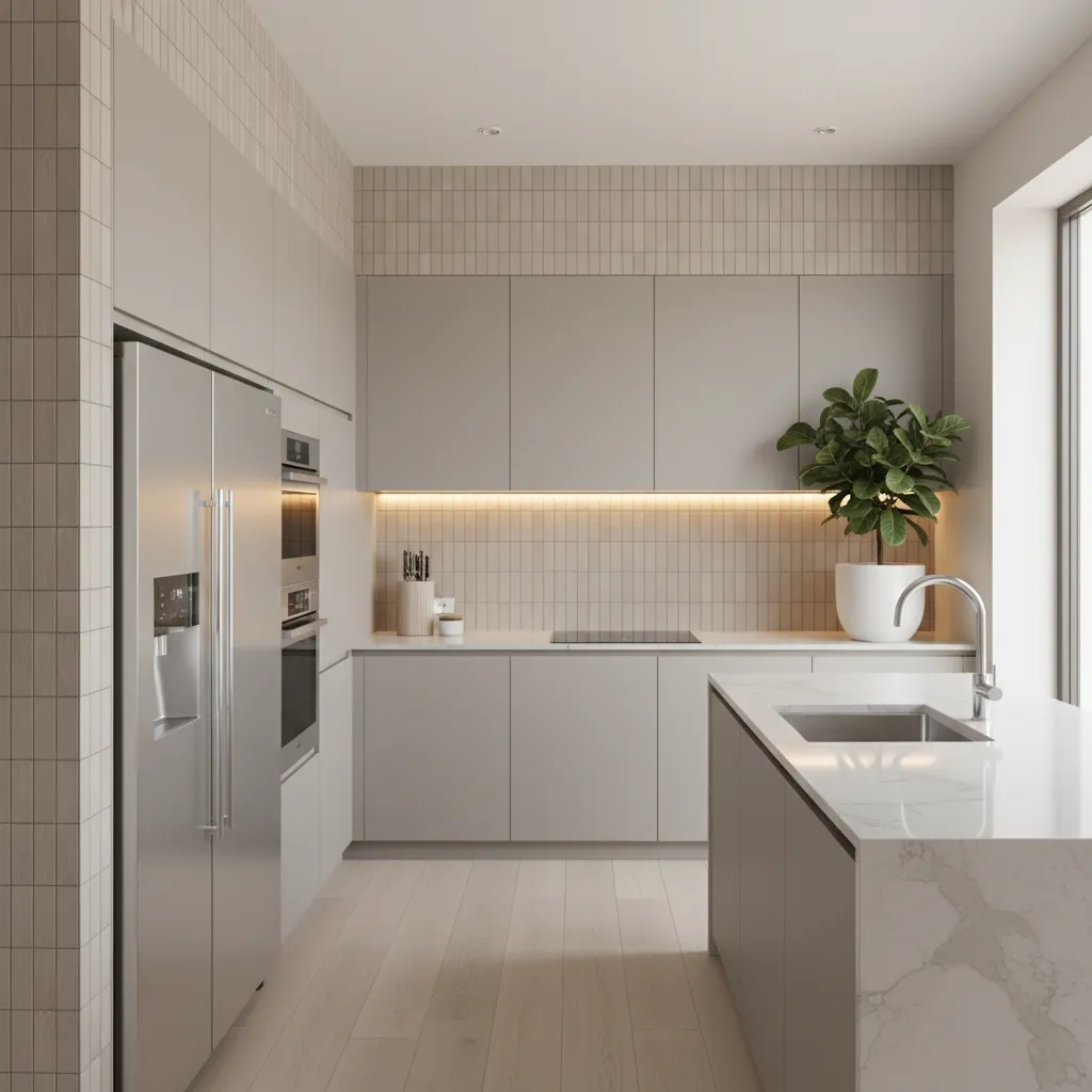 Yes! Light-colored tiles, reflective glass, or mirrored backsplashes can make a small kitchen feel more open and airy. Vertical patterns or elongated tiles also help create the illusion of height, enhancing the sense of space.