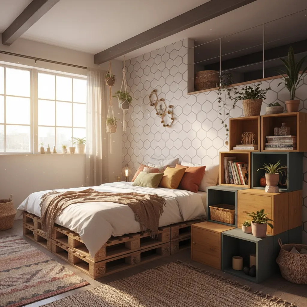 Mix chunky knit blankets, linen sheets, and velvet throw pillows. Layering textures makes a small bed feel incredibly plush and high-end.