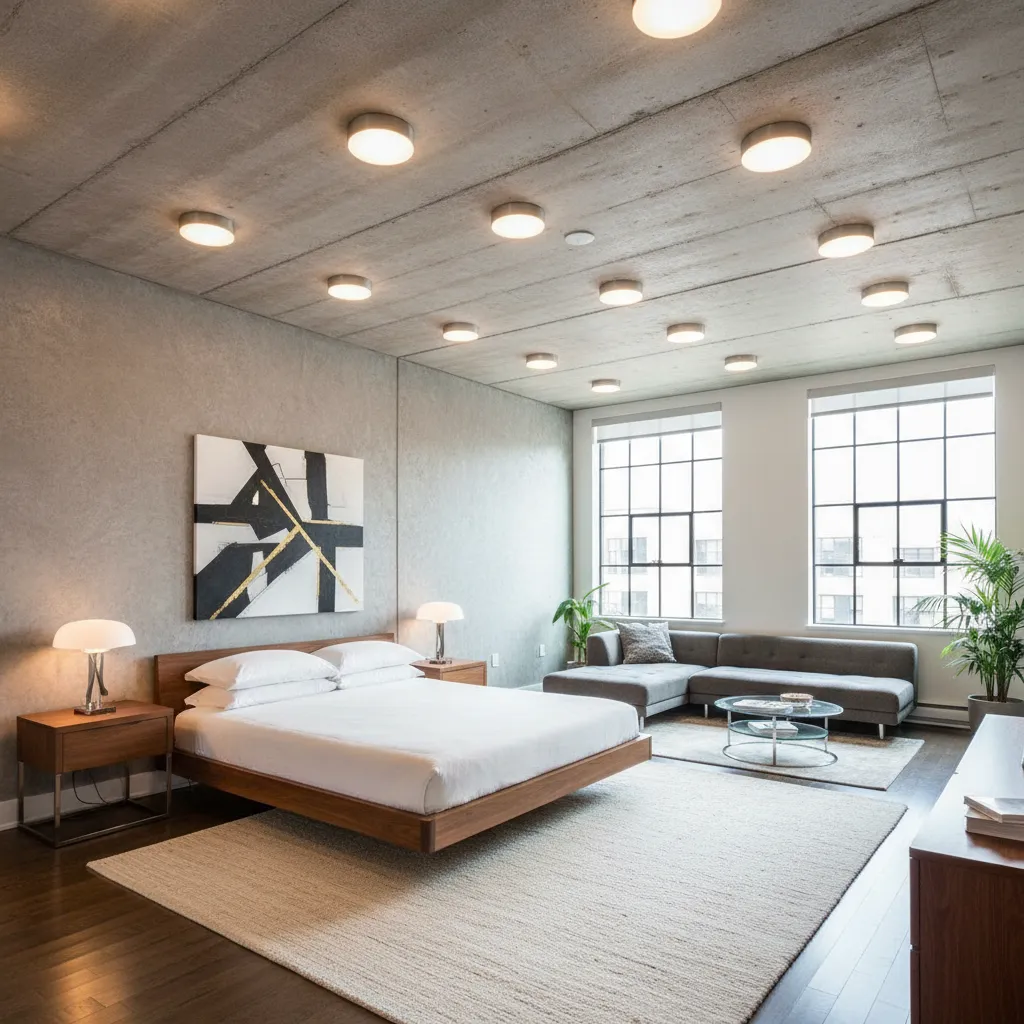 Avoid hanging chandeliers or pendant lights directly over the bed. Use low-profile flush mount lights to maximize your head clearance.