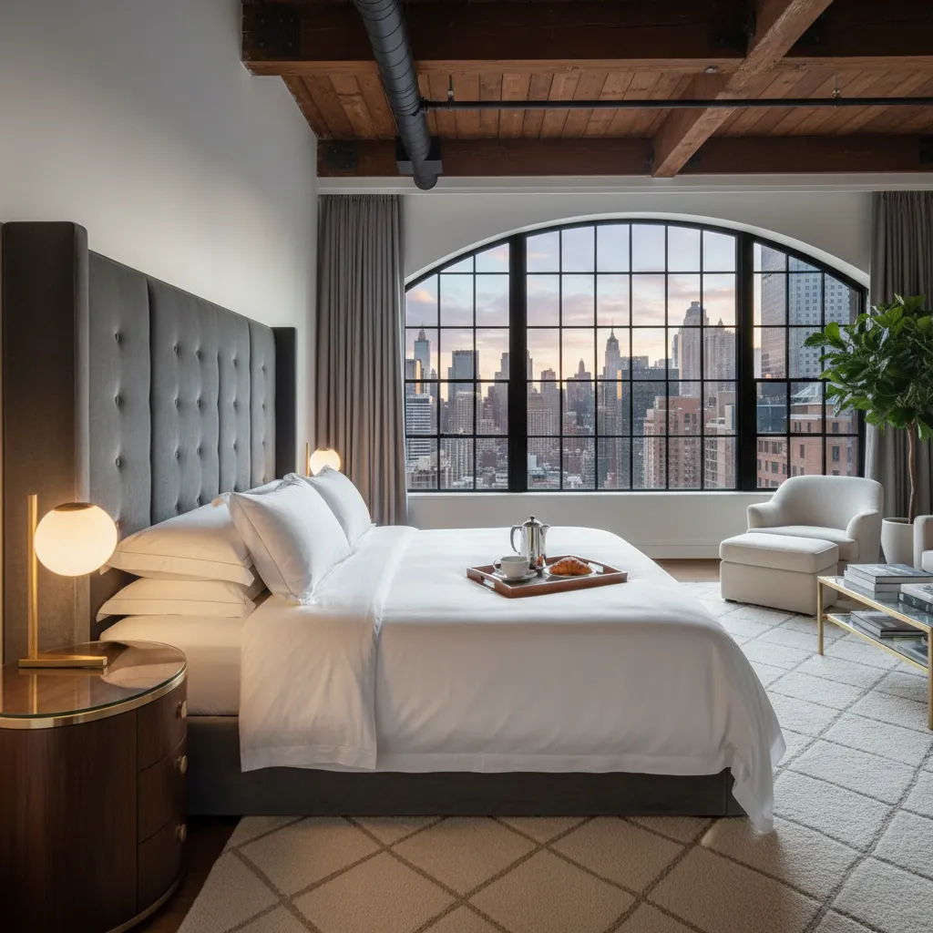Upgrade to high-thread-count sheets, a fluffy duvet, and a stylish breakfast tray. These elements tie into Luxurious Bedroom Decor Ideas to make your loft feel like a five-star getaway.