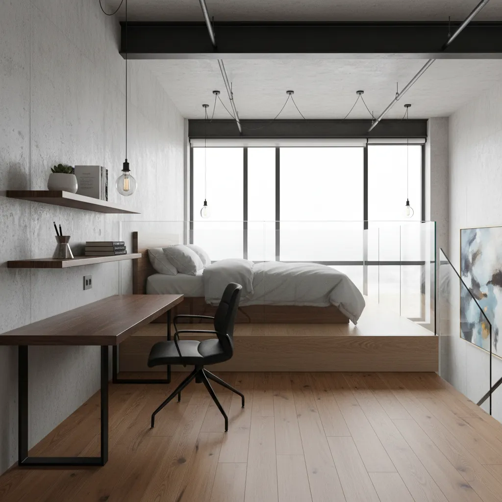 Turn the space below your loft bed into a functional workspace. Add a sleek desk, some floating shelves, and good task lighting. This separates your work life from your rest area beautifully.