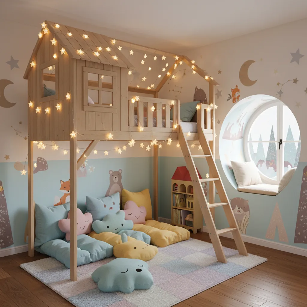If the loft is for a younger family member, add fairy lights, soft floor cushions, and fun wall decals. You can easily adapt Dreamy Kids’ Bedroom Decor Ideas to make a high-up space feel safe and magical.
